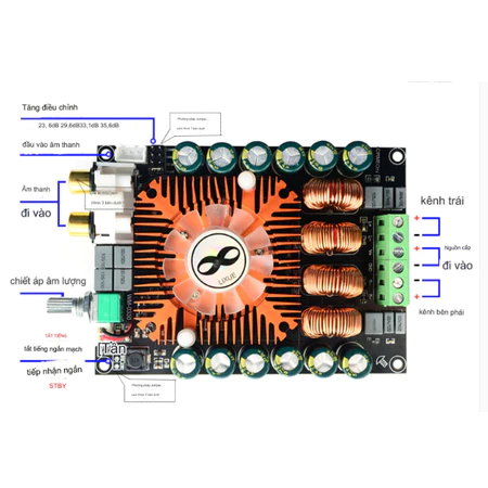 Đảm bảo đấu đúng cực nguồn và loa, tuy có bảo vệ ngược nhưng không nên chủ quan.